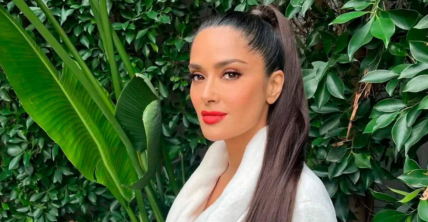 На снимке 56-летняя звезда предстала перед поклонниками в белоснежном халате. Фоном для кадра послужили тропические джунгли. Актриса позирует на фото с вечерним макияжем. Акцент в нем сделан на губы. Визажисты нанесли звезде красную помаду. Волосы Сальмы убраны в высокий хвост.