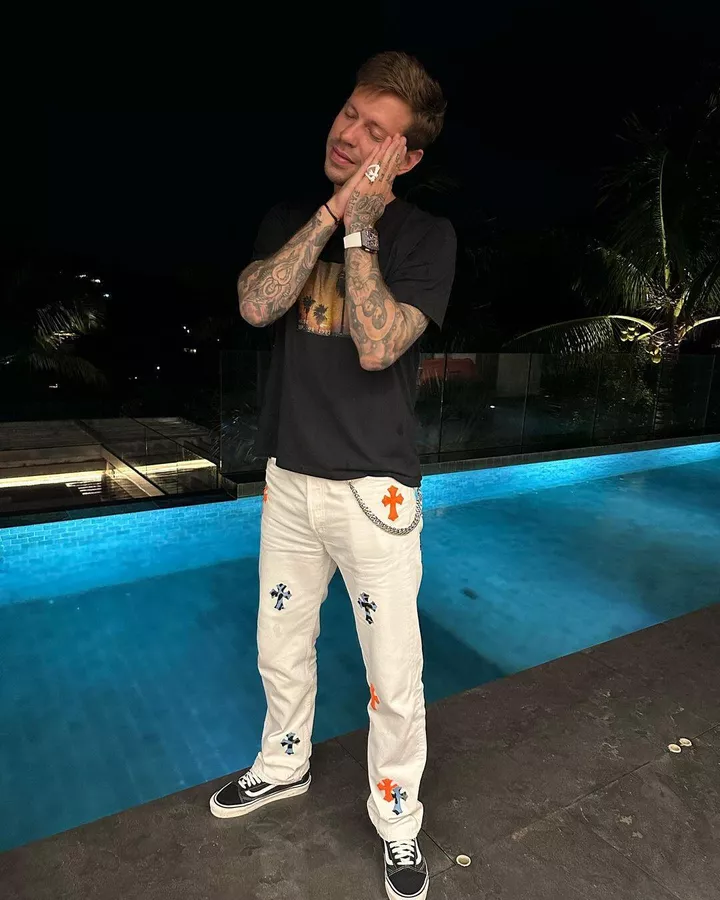 Выяснилось, что футболист носит часы бренда Richard Mille за 40 миллионов рублей. Необычные джинсы обошлись нападающему в 500 тысяч рублей. Стоимость белого кольца из силикона и футболки — 40 тысяч рублей. Таким образом образ обошелся футболисту в 41 миллион рублей.