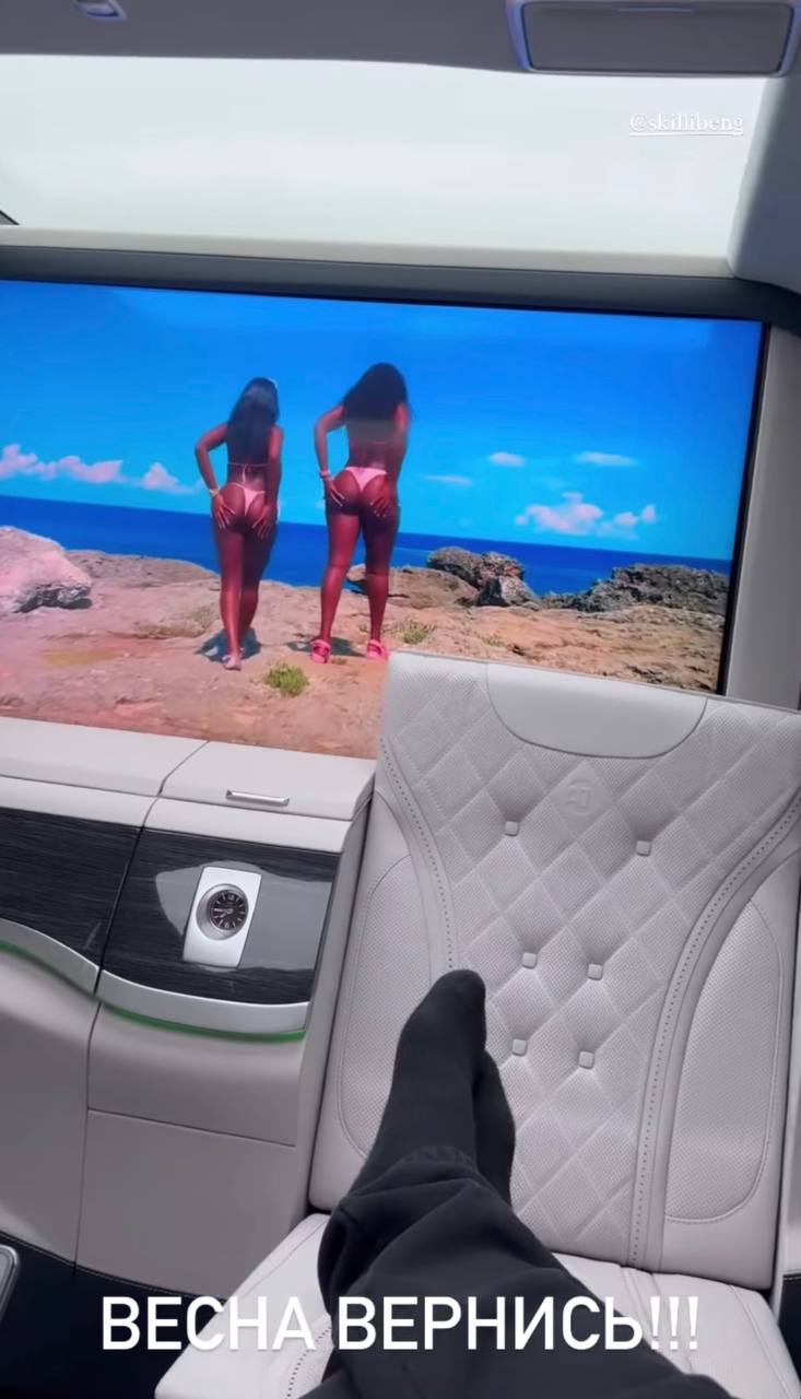 На размещенном видео Джиган едет по заснеженной в Москве в собственной машине, которую подарила ему жена на день рождения. Он лежит на сиденье и смотрит в монитор, где проигрывается ролик с девушками в купальниках, танцующими в довольно откровенных позах.