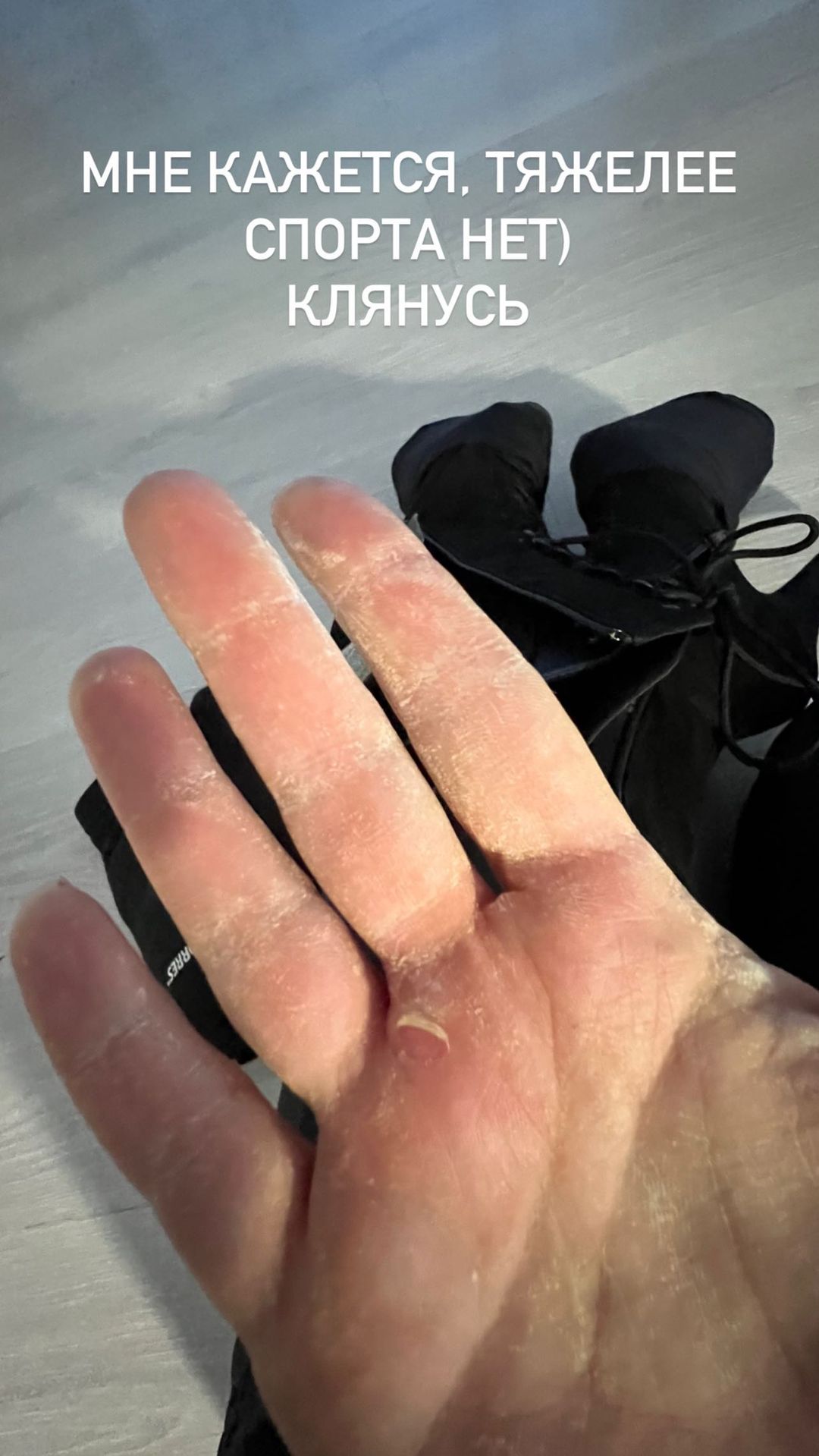 «Мне кажется, тяжелее спорта нет. Клянусь», — заявила Ида Галич после пары движений на пилоне и продемонстрировав руки в мозолях.