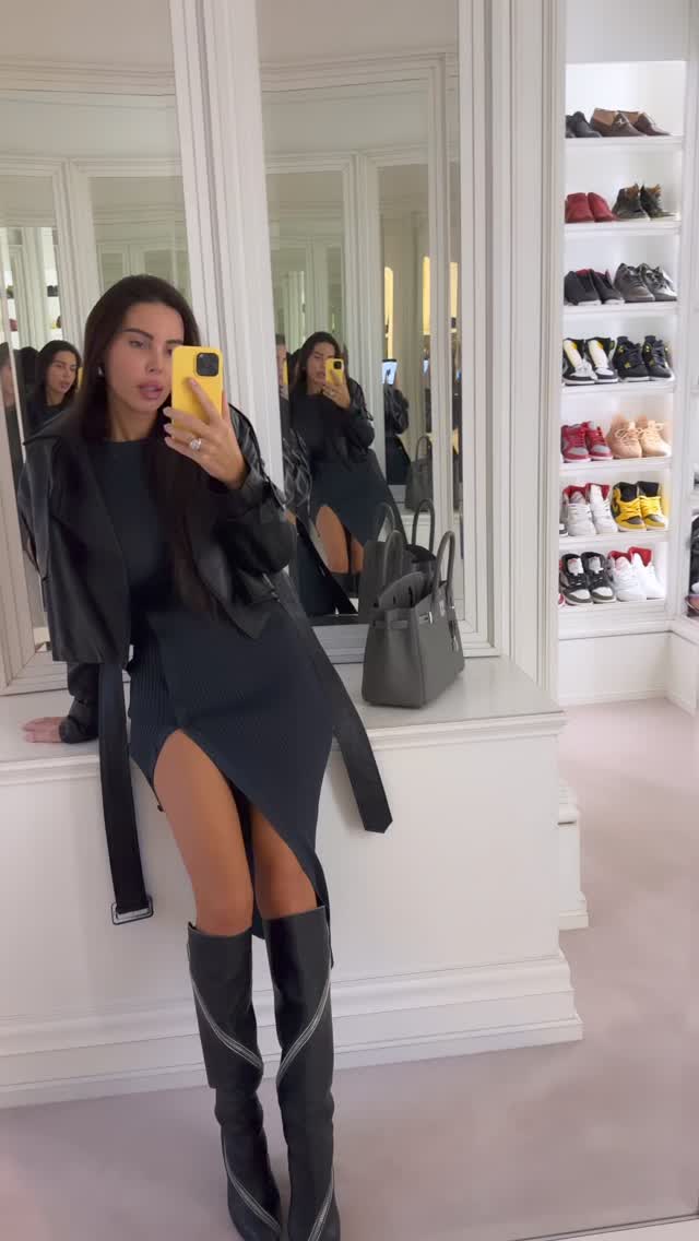 Сегодня блогер отправилась в салон красоты. Таким образом девушка решила бороться с плохим настроением. Чтоб настроиться на позитивный лад, Самойлова надела трикотажное облегающее платье черного цвета с разрезом до бедра. Дополнили образ высокие сапоги и кожаная куртка.