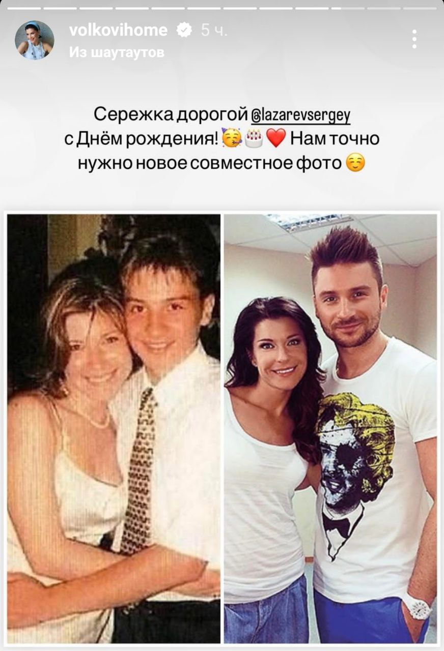 Звезда сериала «Воронины» Екатерина Волкова опубликовала в своих социальных сетях архивный снимок с Сергеем Лазаревым. 1-го апреля певцу исполнилось 40 лет.