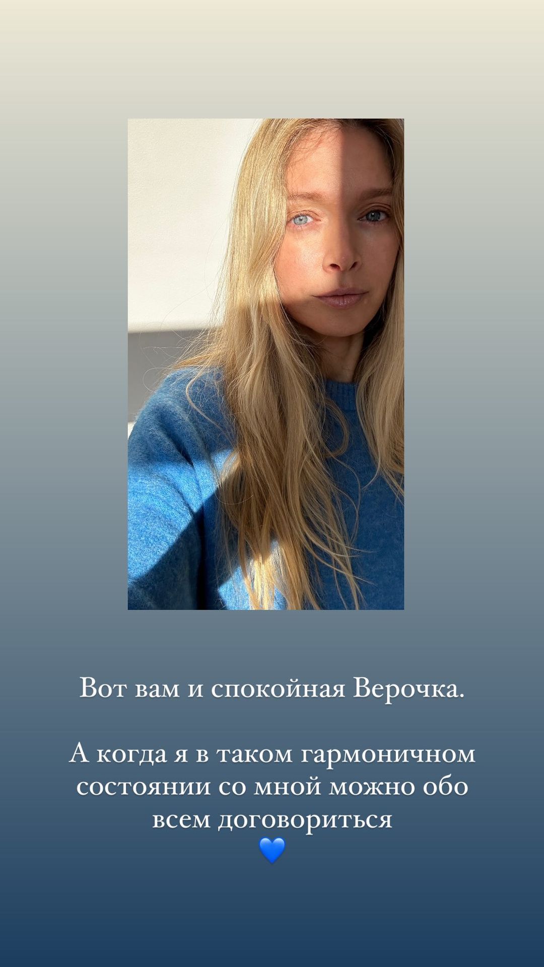 «Вот вам и спокойная Верочка. А когда я в таком гармоничном состоянии, со мной обо всем можно договориться», — написала экс-солистка «ВИА Гры».