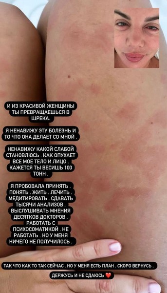 «Я пробовала принять, понять, жить, лечить, медитировать, сдавать тысячи анализов, выслушивать мнения десятков докторов, работать с психосоматикой, не работать, но у меня ничего не получилось. Так что как-то так сейчас», — заверила Анна.