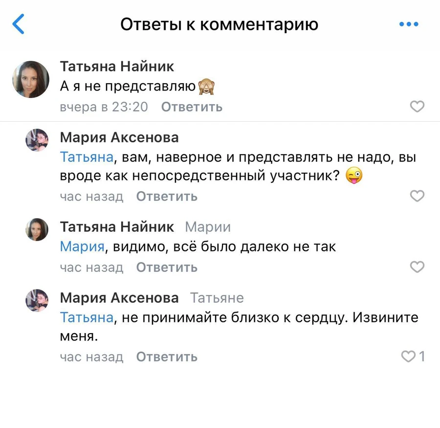 После чего некоторые Telegram-каналы начали выдвигать свои предположения. Выбор пал на Татьяну Найник. Затем и сама Найник неожиданно отозвалась в комментариях. Она заявила, что «все было совсем не так», чем и подтвердила догадки поклонников.