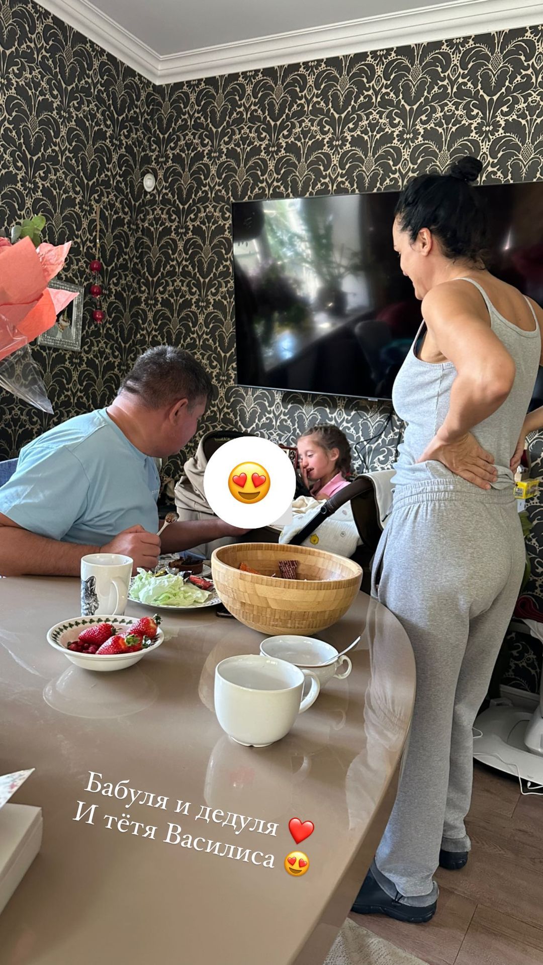 «Бабуля и дедуля. И тетя Василиса», — подписала снимок Морозова.