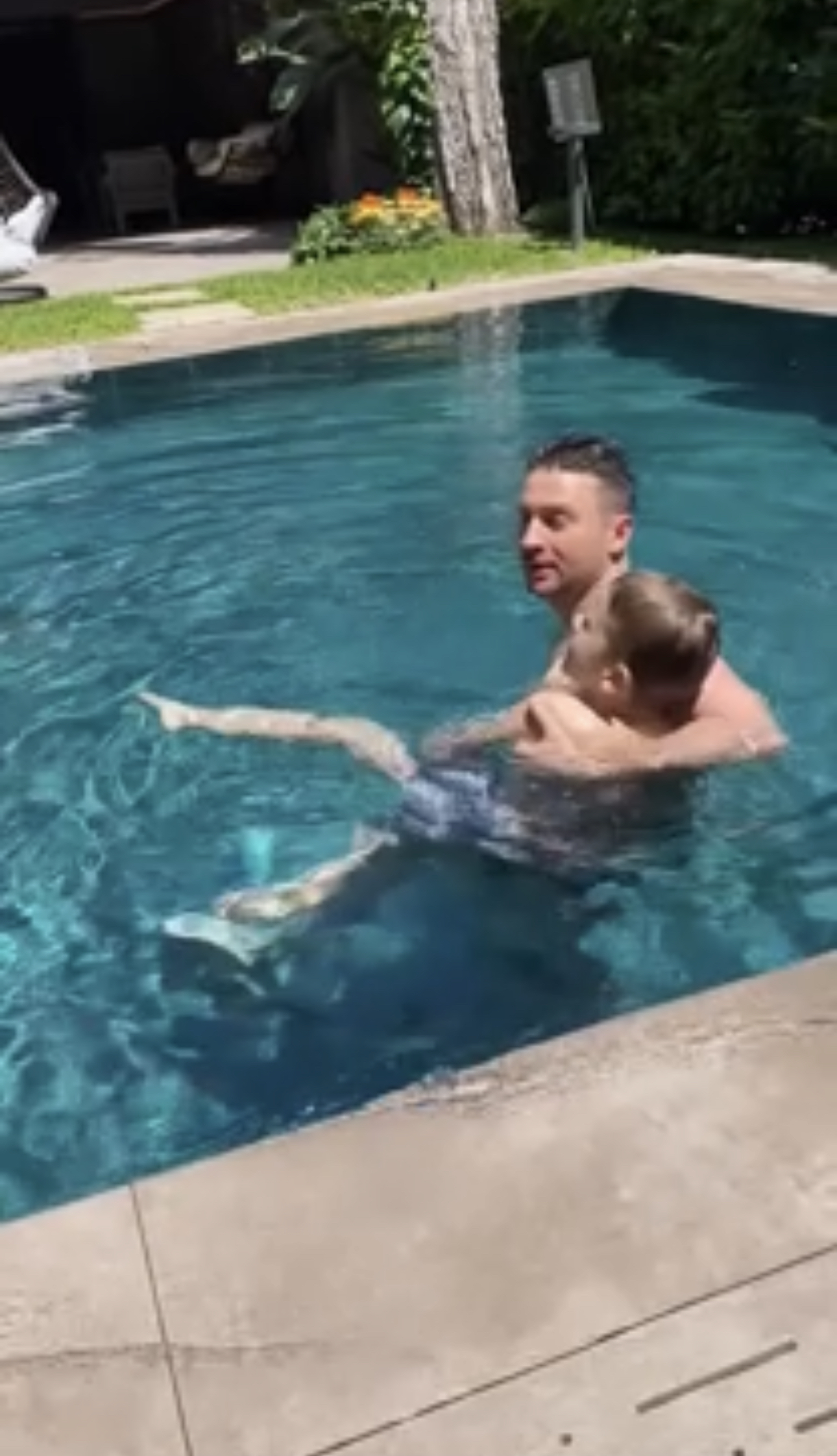 На размещенных снимках Лазарев вместе с сыном и дочерью отдыхали на вилле с бассейном. Потом примерный семьянин захотел научить 5-летнюю дочь Анну плавать в воде, контролирую все ее движения.
