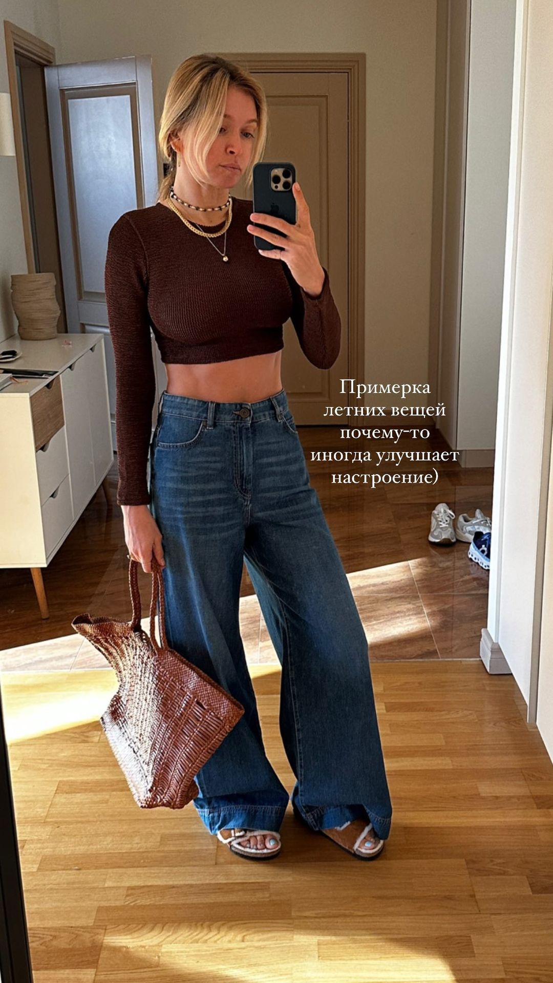 «Примерка летних вещей почему-то иногда поднимает настроение. Особенно когда на улице такая красота. Но кстати да, то, что я в них влезла – это тоже радует. Правда, для этого пришлось потрудиться», — подписала публикацию блондинка.
