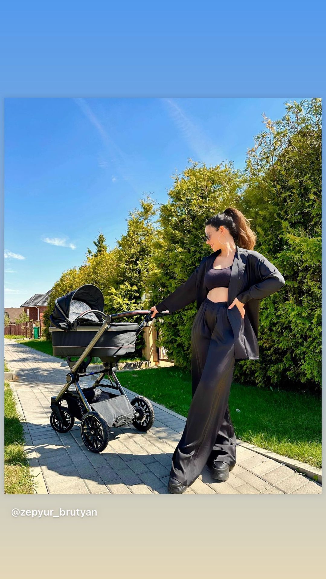 Сегодня, спустя 2,5 недели, актриса опубликовала в соцсетях фото с прогулки. На снимке 27-летняя Брутян позировала в топе и черных брюках с завышенной талией. Сверху артистка накинула рубашку в тон.
