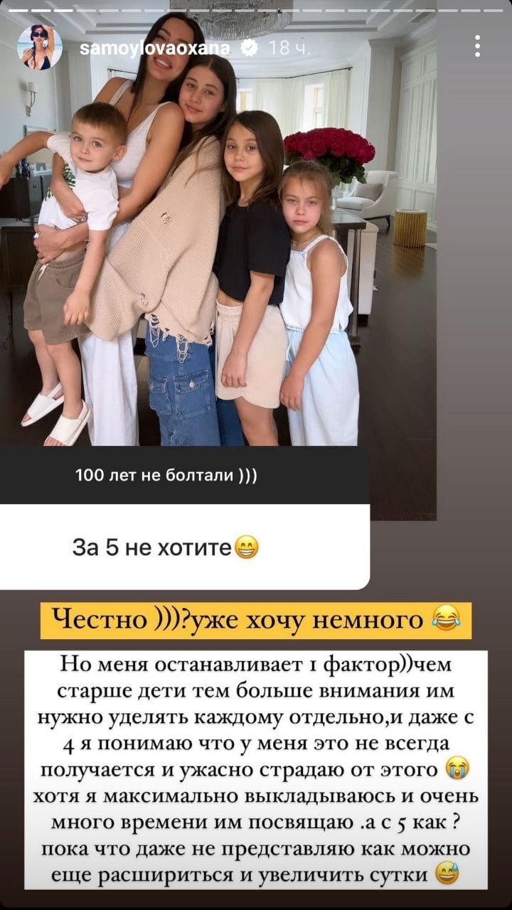 Оксана Самойлова задумалась о пополнение в семье. Блогерша призналась, что размышляет на тему рождения пятого ребенка.