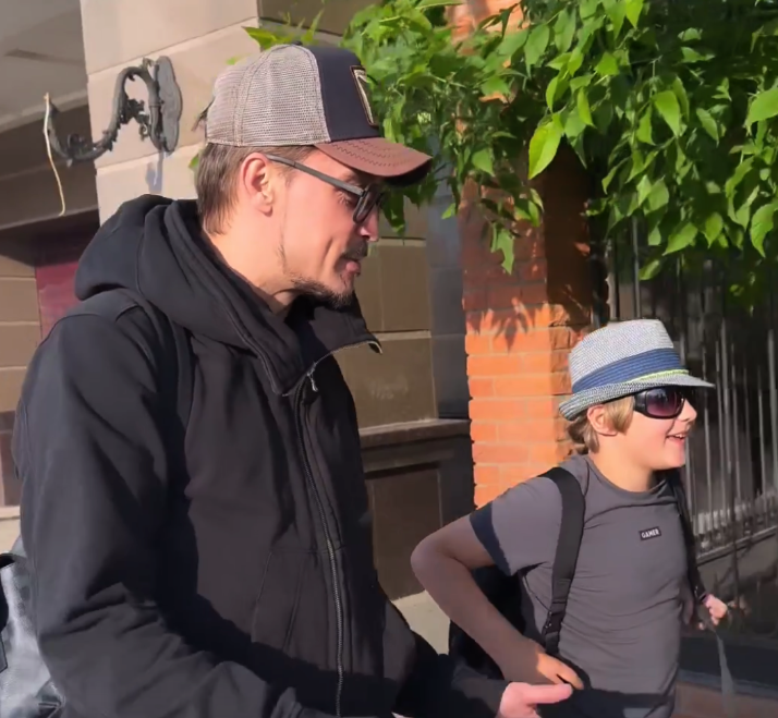 «Обеденная прогулка с крестником Сашей, увлекательные разговоры и богатый на смыслы русский язык», — написал артист под видео.