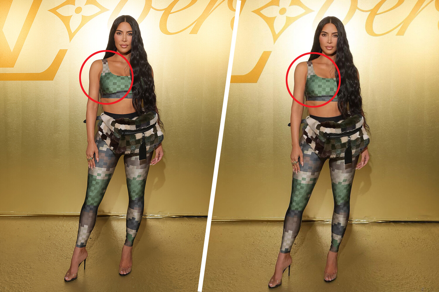 Знаменитость разместила несколько снимков с показа Louis Vuitton, который прошел в рамках Недели моды в Париже. При этом ранее в Сети появились исходные снимки папарацци, которые, как оказалось, не были отретушированы бизнесвумен. Пользователи сравнили оба варианта фотографий и пришли к выводу, что Ким Кардашьян скорректировала форму живота, уменьшила руки, талию, ноги, грудь, а также подбородок.