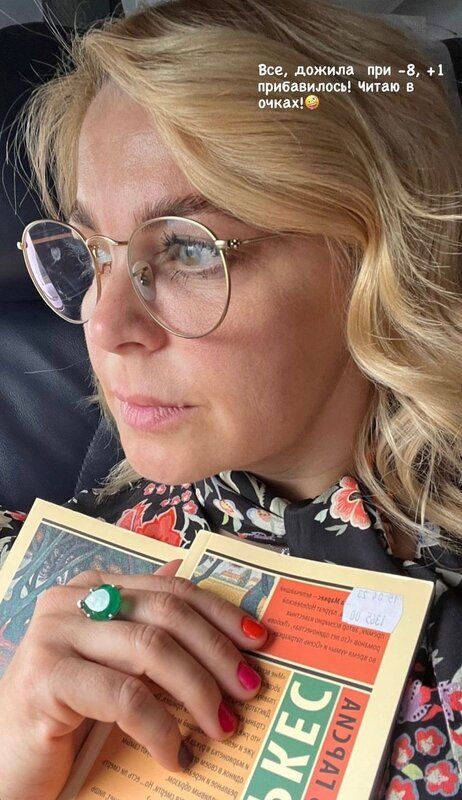 В своих социальных сетях Пегова опубликовала фотографию в очках и отметила, что теперь только так она может читать.