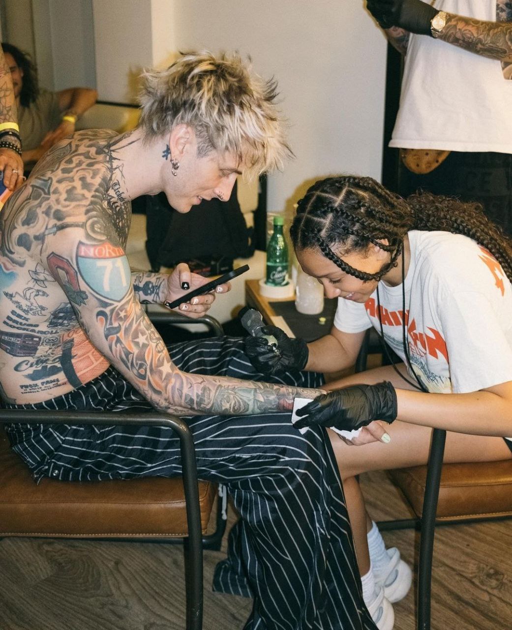 Рэпер Колсон Бэйкер, более известный как Machine Gun Kelly, разрешил своей 13-летней дочери Кейси набить ему татуировку. Кадрами исполнитель поделился в своих социальных сетях.