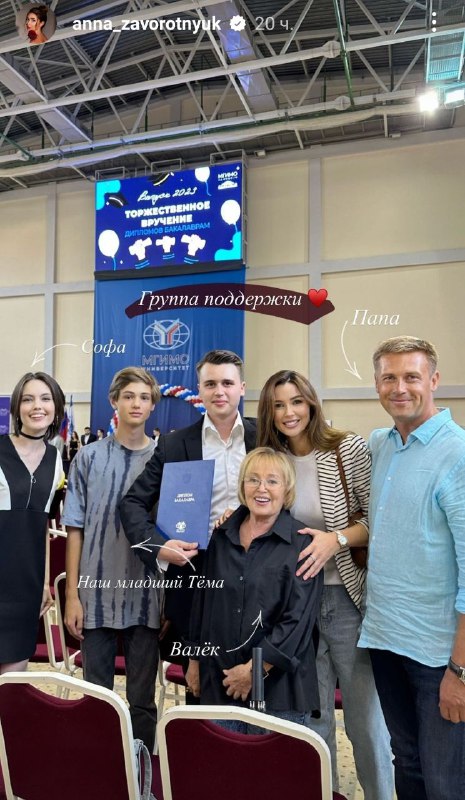 Блогерша поделилась в своих социальных сетях трогательными кадрами, на которых присутствовала практически вся семья, не было только самой актрисы и фигуриста. Анна сообщила, что ее брат Майкл закончил МГИМО.
