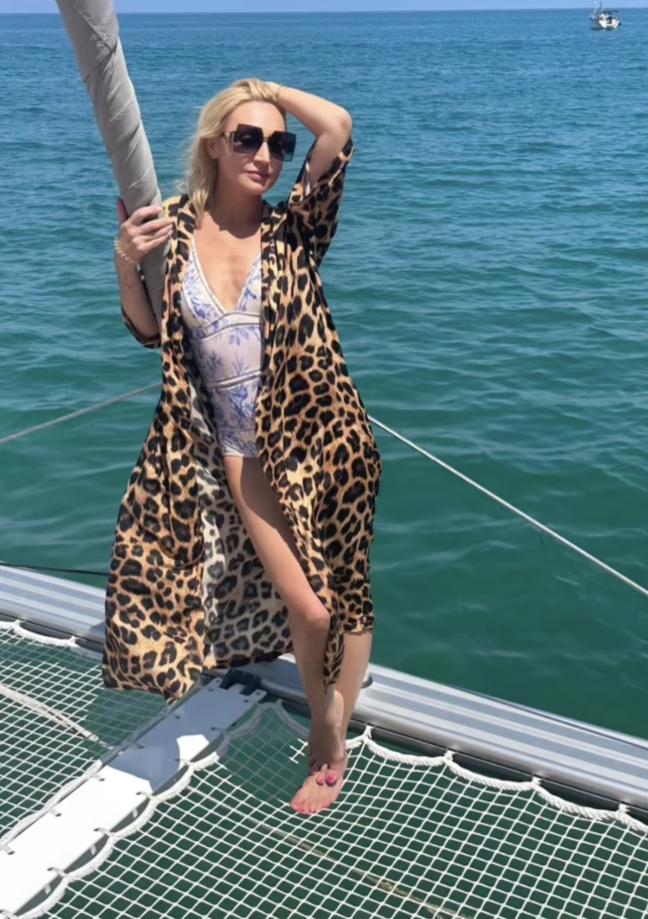Кристина Орбакайте накинула на плечи тунику с леопардовым принтом. Образ подчеркнул подтянутую загорелую фигуру поп-звезды.