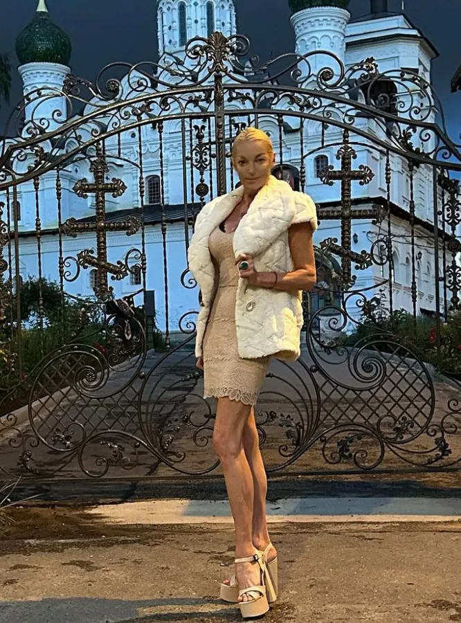 На размещенных кадрах в сети Волочкова показала, в каком виде посетила православный храм. Танцовщица выбрала кружевное мини-платье и белый меховой жилет. Под нарядом у нее был виден черный бюстгальтер.
