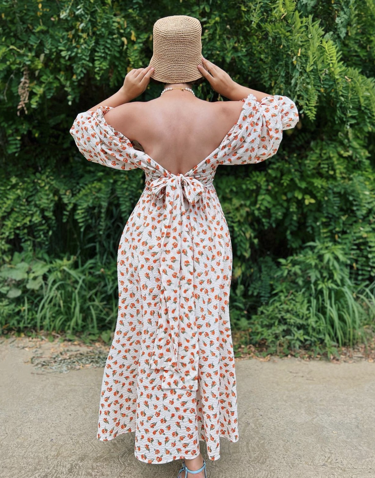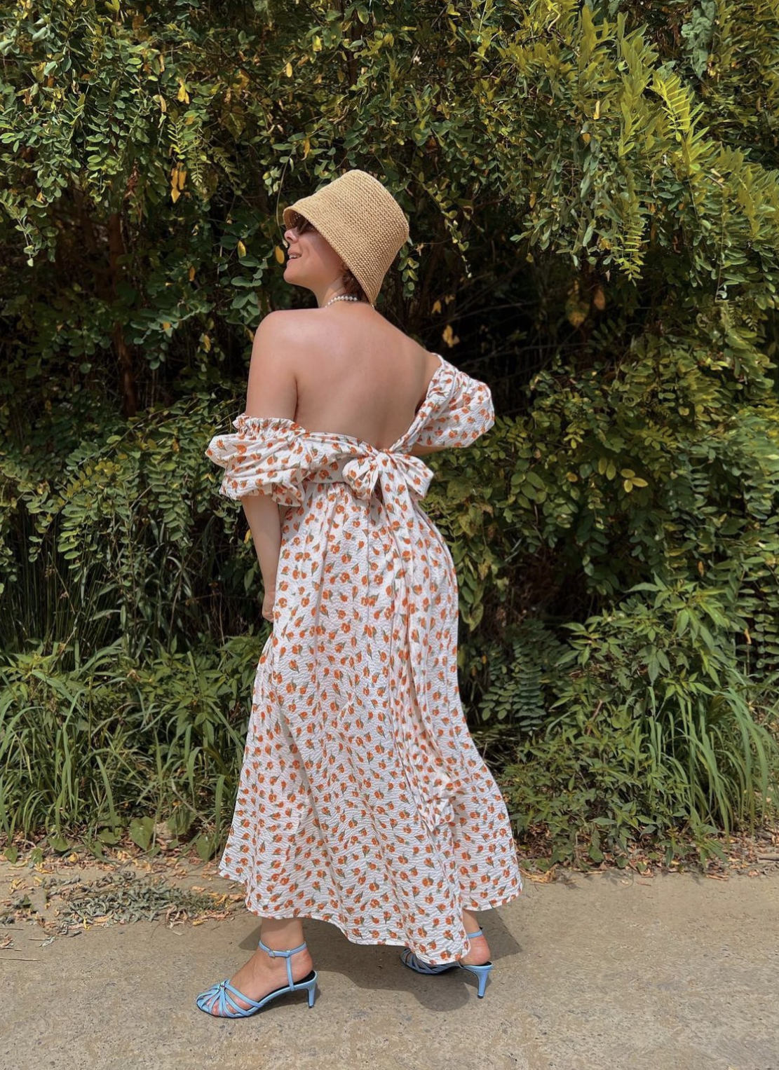 На размещенных снимках в сети Татьяна Брухунова позировала на фоне зелени. Для выхода в свет она надела белое платье с цветочным принтом. В качестве дополнения к образу жена юмориста выбрала соломенную шляпу и голубые сандалии на маленьком каблуке.