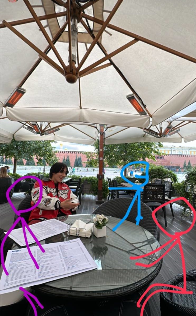 Звезда интернета опубликовал фото в личном блоге. На них он показал, что сидит в самолете и пьет газированный напиток «Добрый Cola». Позже артист выставил кадры, на которых он сидит на Красной площади в ресторане Bosco.