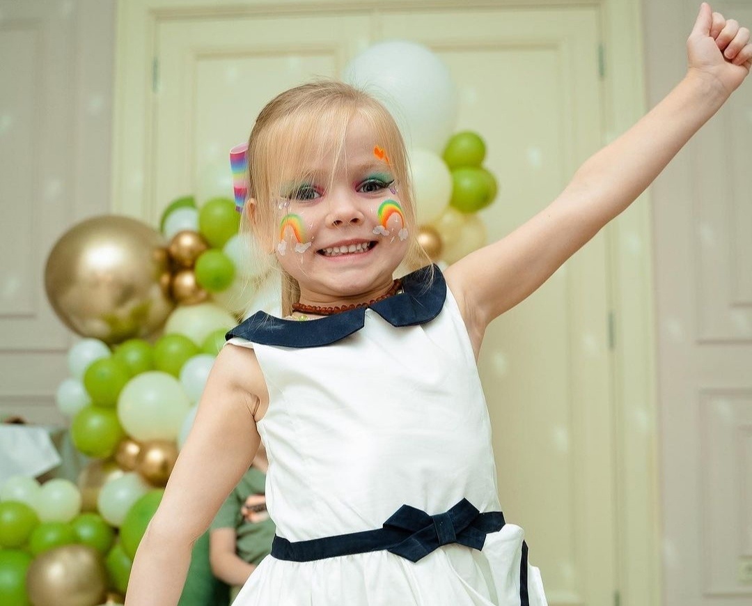 Кроме того, 52-летняя актриса опубликовала портрет Марии, на лице которой яркий грим в зеленых оттенках и маленькие радуги на щеках.