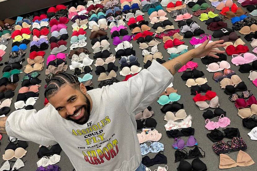 По словам музыканта, на снимке изображены все бюстгальтеры, которые ему бросали поклонницы на сцену. В комментариях под публикацией один из подписчиков пошутил, что в коллекции Дрейка больше лифчиков, чем в магазине популярного бренда нижнего белья Victoria’s Secret.