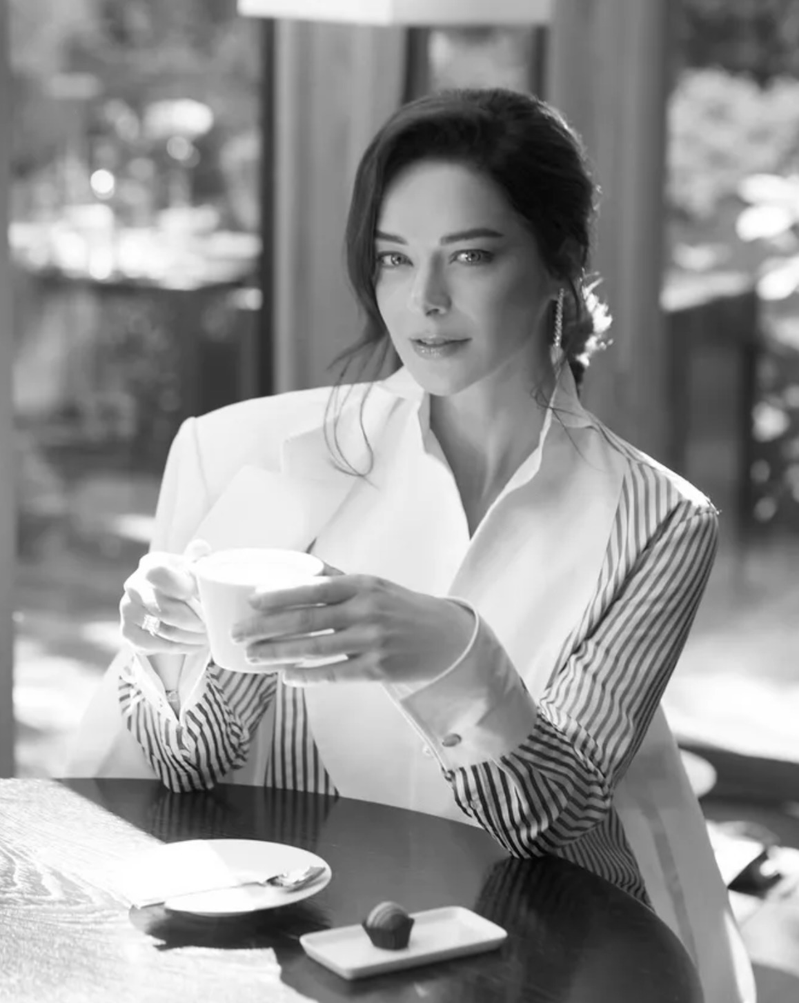 Российская актриса Марина Александрова опубликовала новые кадры с фотосессии в своих социальных сетях. Она показала, как провела время в кафе с чашкой кофе в руках.