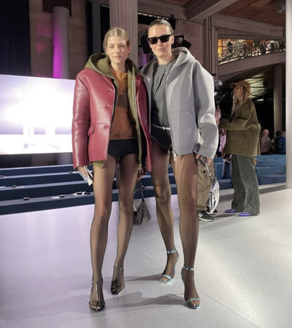 На размещенных кадрах в сети Саша Новикова позировала с моделью Натальей Османн. Знаменитости пришли на показ французского бренда в трусах и черных колготках.