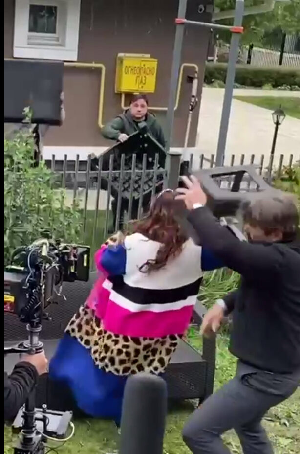 Инцидент произошел во время съемки одной из сцен во дворе дома Букиных. На размещенных кадрах видно, как Бочкарева замахивается и случайно ударяет Логинова табуреткой по голове.