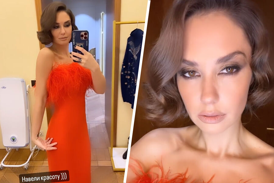 Для выхода в свет Муцениеце выбрала красное платье-бюстье с отделкой из перьев. Она также нанесла вечерний макияж, уложила волосы в ретро-стиле. НА красной дорожке артистка появилась в компании своих детей от бывшего мужа Павла Прилучного – 10-летнего Тимофея и 7-летней Мией.
