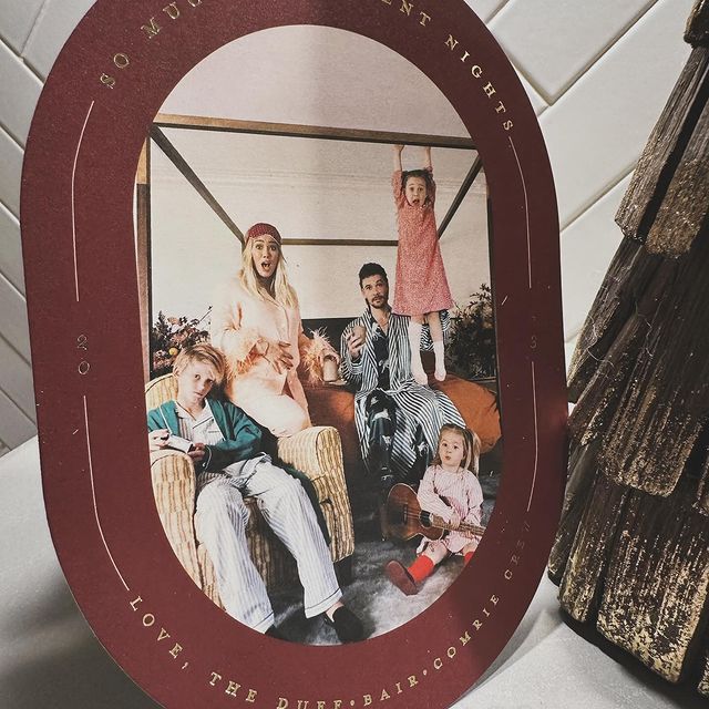 Актриса с супругом сидели на краю кровати, а вокруг них позировали дети: 11-летний сын Лука, которого Дафф родила в первом браке, а также дочери от второго избранника – 5-летняя Бэнкс и 2-летняя Мэй. Чтобы не создавать интриги, знаменитость положила руку на уже заметно округлившийся животик. В дополнение она назвала свою семью «сумасшедшей компанией».
