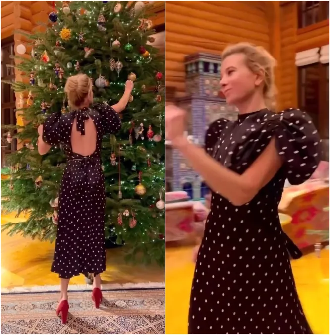 Высоцкая призналась, что наряжала елку четыре часа под музыку и с шампанским. «Обожаю эти предновогодние радости!», — заявила актриса.