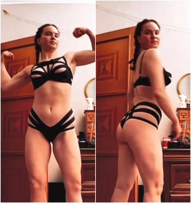 На размещенных в Сети кадрах девушка запечатлена в комплекте черного нижнего белья с разрезами. Бухарова продемонстрировала свою похудевшую фигуру со всех сторон, позируя на камеру, как бодибилдер.