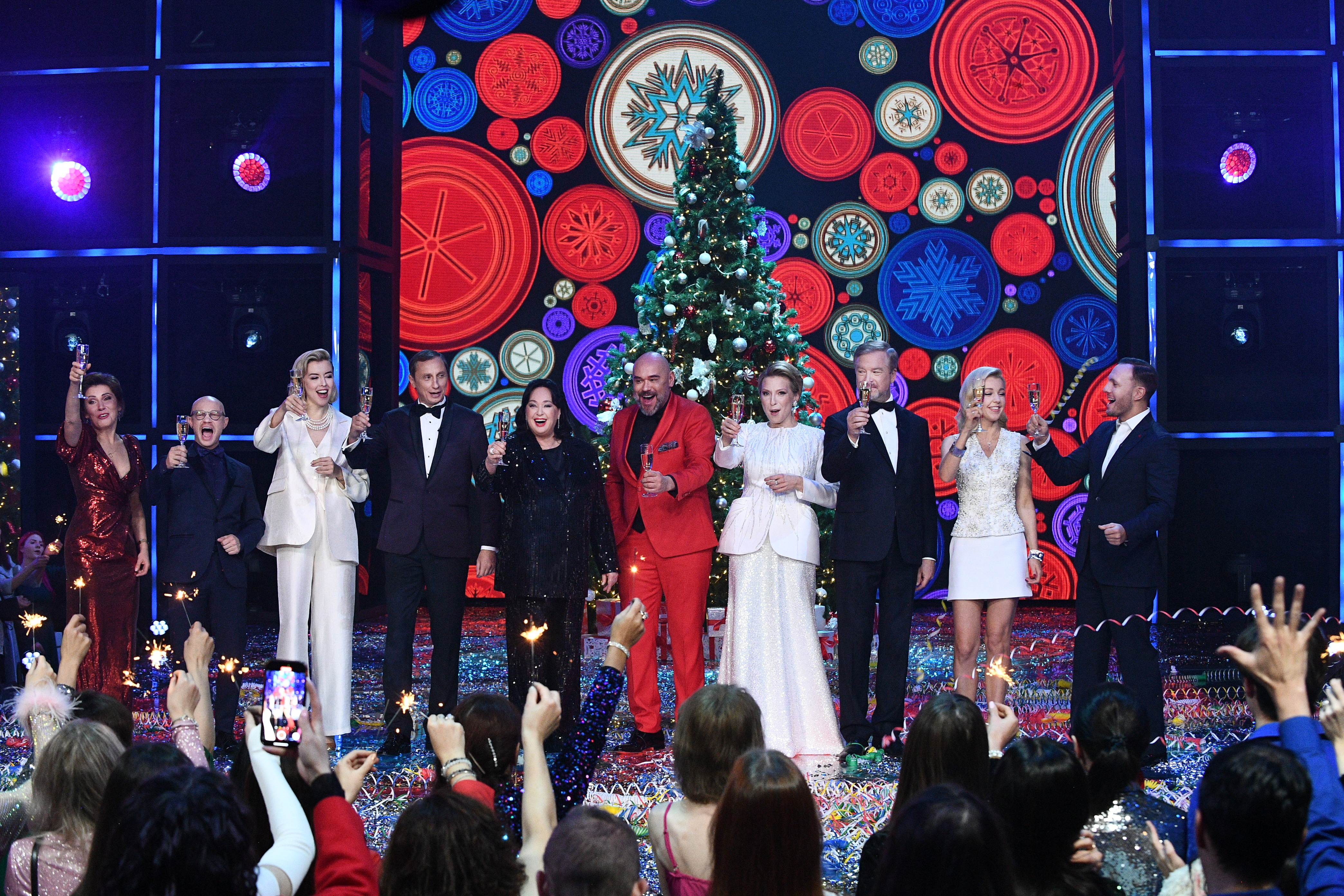 Первый канал готовит большое представление в новогоднюю ночь. Жителей России будут поздравлять Лариса Гузеева, Яна Чурикова, Максим Аверин, Екатерина Березовская, Валдис Пельш, Вадим Галыгин, Светлана Зейналова, Тимур Соловьев, Юлия Барановская и Дмитрий Хрусталев. Все они станут ведущими большого шоу на Первом.