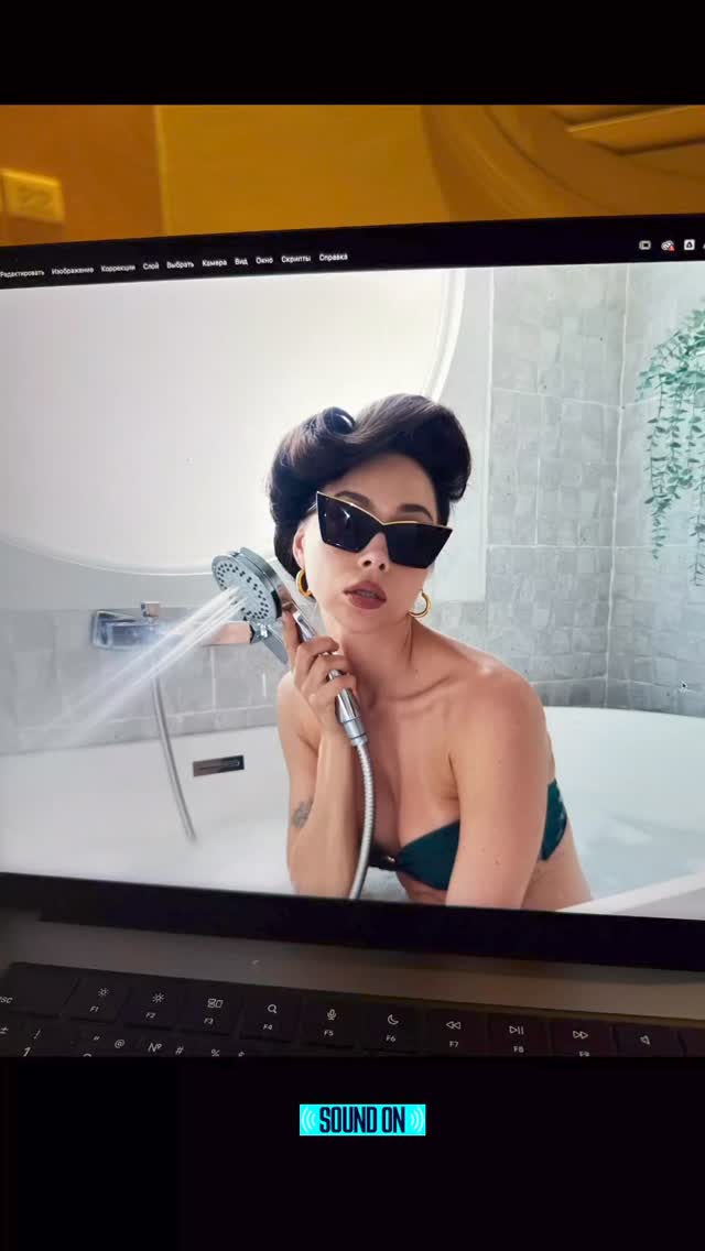 Анастасия взяла в руку рассекатель с включённым душем и приложила его к уху, как телефонную трубку.
