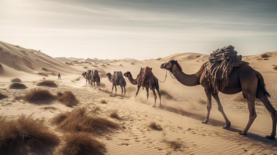 Общая длина маршрута составляет около 560 км. Это расстояние путешественникам предстоит пройти на верблюдах. Им предстоит преодолеть маршрут всего за две недели.