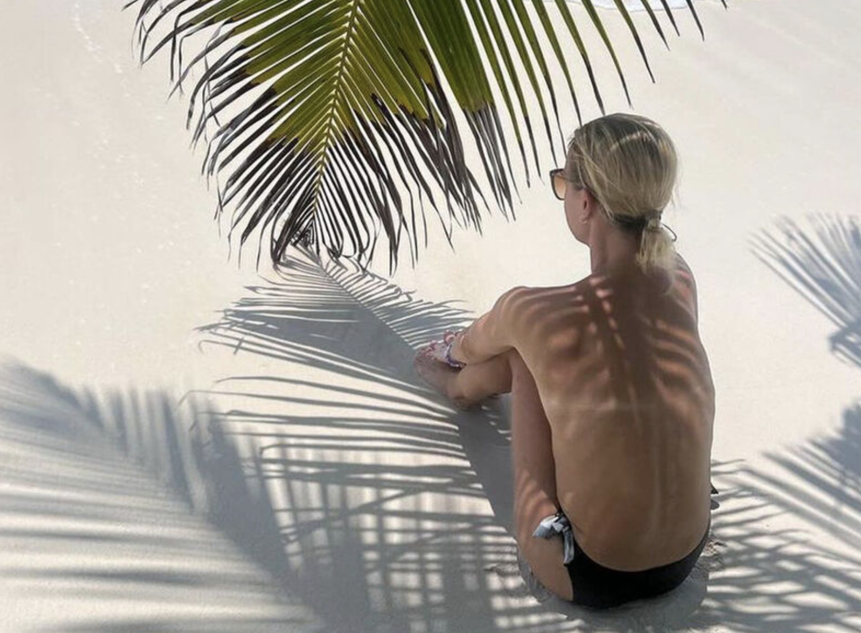На размещенном кадре в сети артистка позировала в бикини. Она сидела на песке под пальмой и смотрела вдаль.