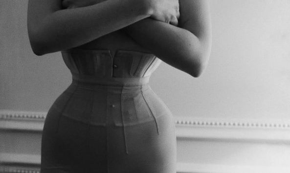 Так, 27-летняя артистка столкнулась с критикой, снявшись в колготках и корсете на талии, затянув его на примерный объем своей шеи. Грудь она прикрыла руками.