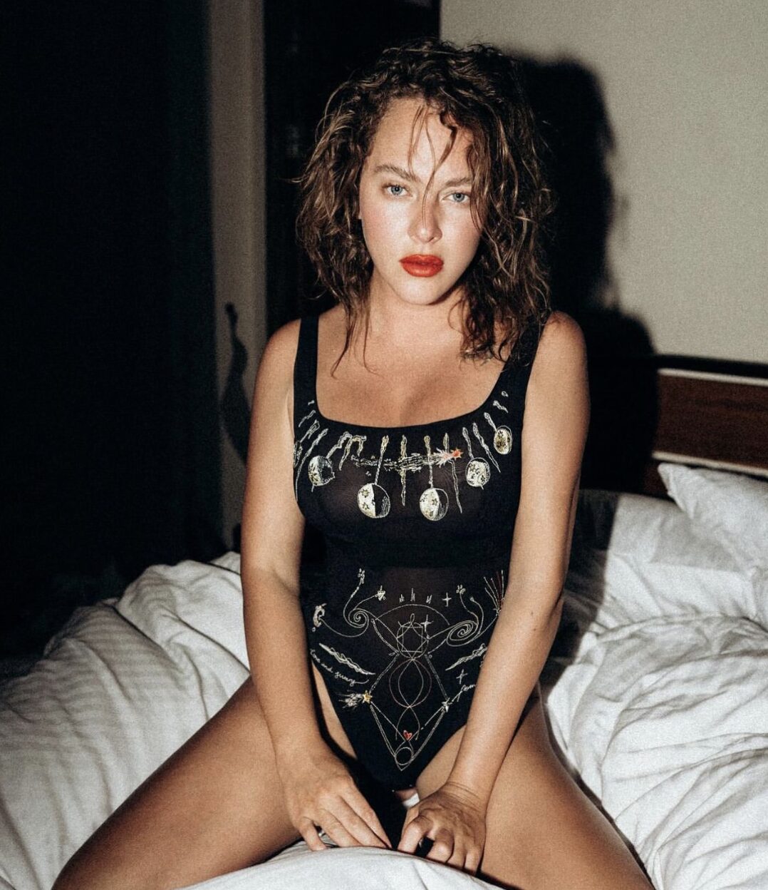 На размещенных кадрах в сети звезда сериала «Беспринципные» позировала в черном боди с глубоким декольте. Она сидела на кровати и позировала с сигаретой во рту. В качестве дополнения к образу актриса сделала ярко-красные губы и уложила волосы.