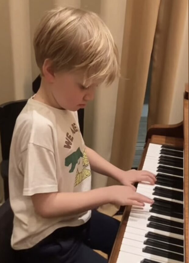 На размещенных кадрах в сети телеведущая показала наследника во время занятия музыкой. Платон сидел за фортепиано и играл мелодию.