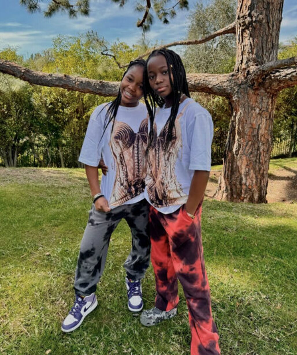 На размещенном снимке в сети 11-летние Стелла и Эстер позировали в обнимку на улице возле дерева. Девочки надели одинаковые футболки с принтом, яркие брюки и кеды.