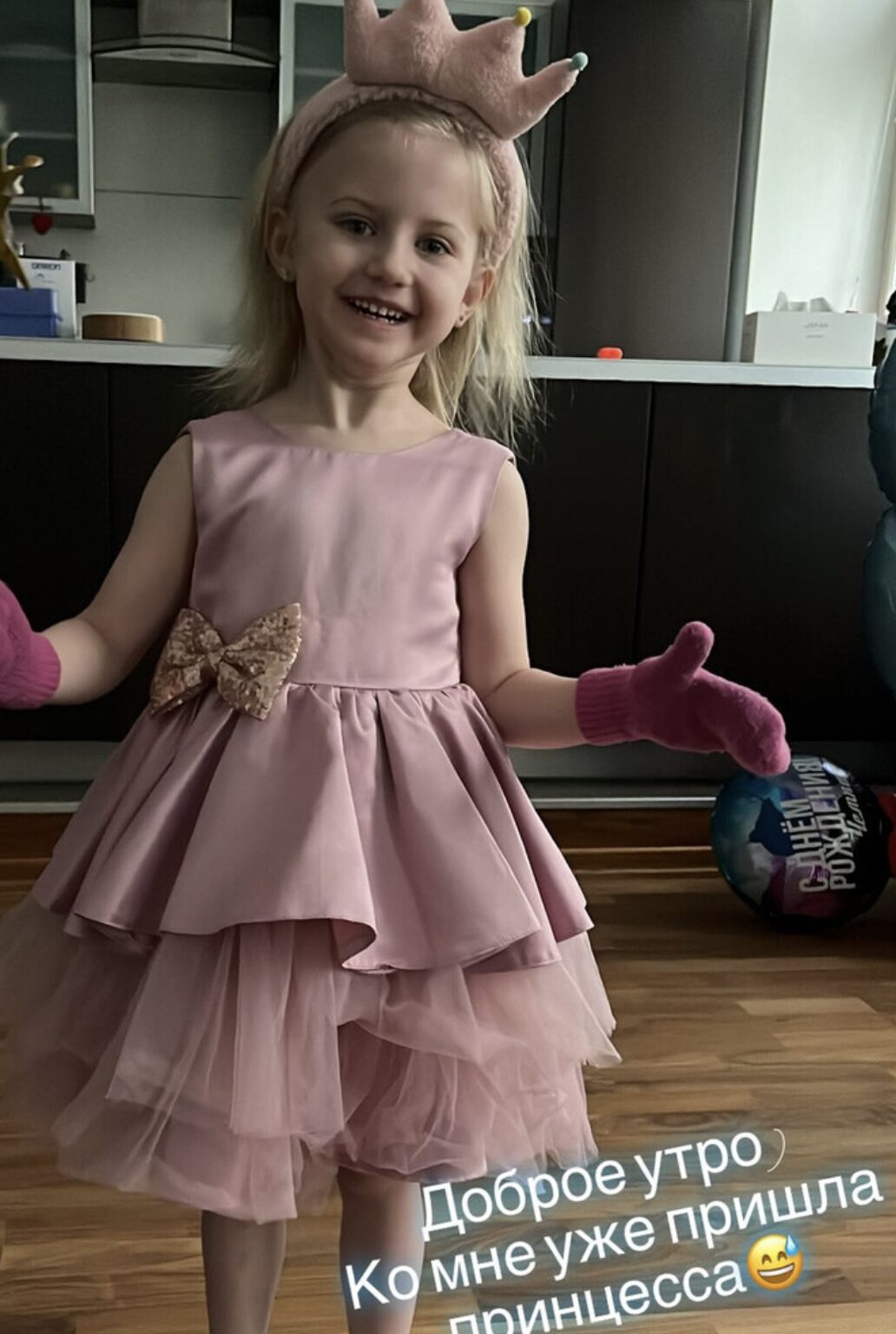 На размещенном кадре в сети 4-летняя Лукерья позировала дома на кухне в платье принцессы. Бегунова проснулась и увидела, как малышка нарядно оделась.