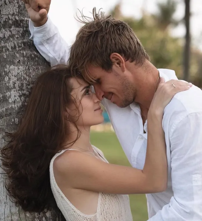 В личном блоге спортсменка показала, как она тает в нежных объятиях теннисиста. На безымянном пальце правой руки у нее заметили обручальное кольцо.