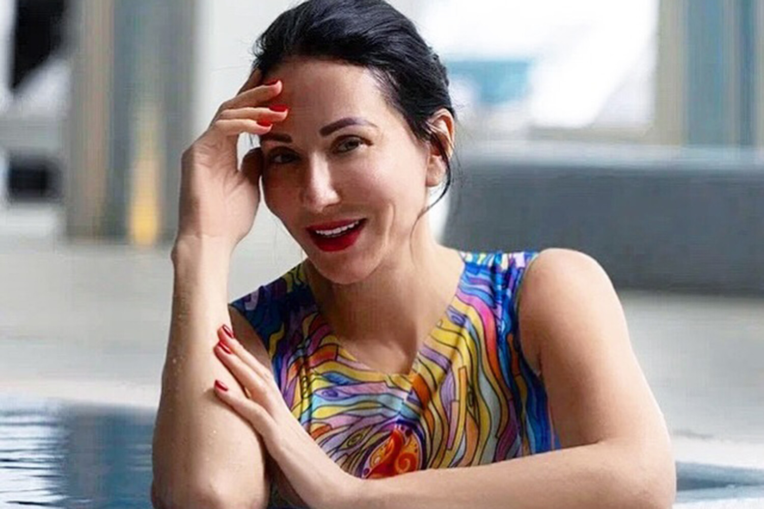 Так, артистка позировала в бассейне на курорте в Сочи, держась за бортик. Волосы она убрала наверх, чтобы не намочить, а от макияжа отказалась. По ее словам, она прошла трехдневную программу детокса и чувствует себя намного лучше.