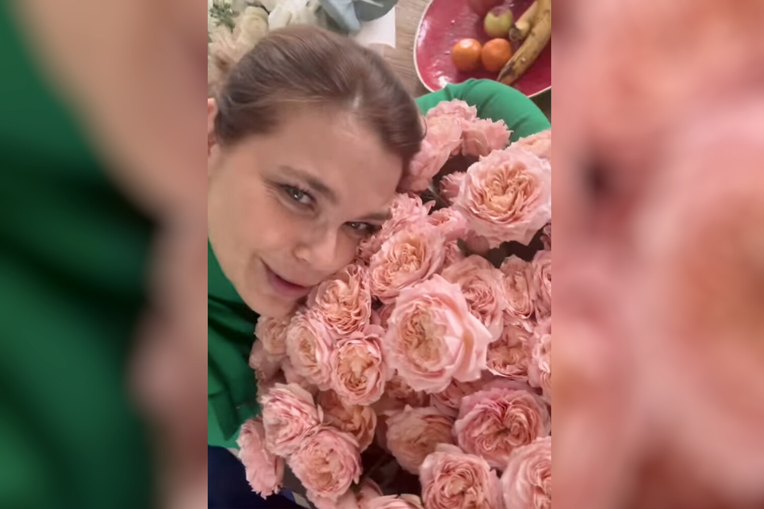 Так, она опубликовала снимок с букетом цветов нежно-розового цвета, пояснив, что возлюбленный поздравил ее с получением звания народной артистки России.