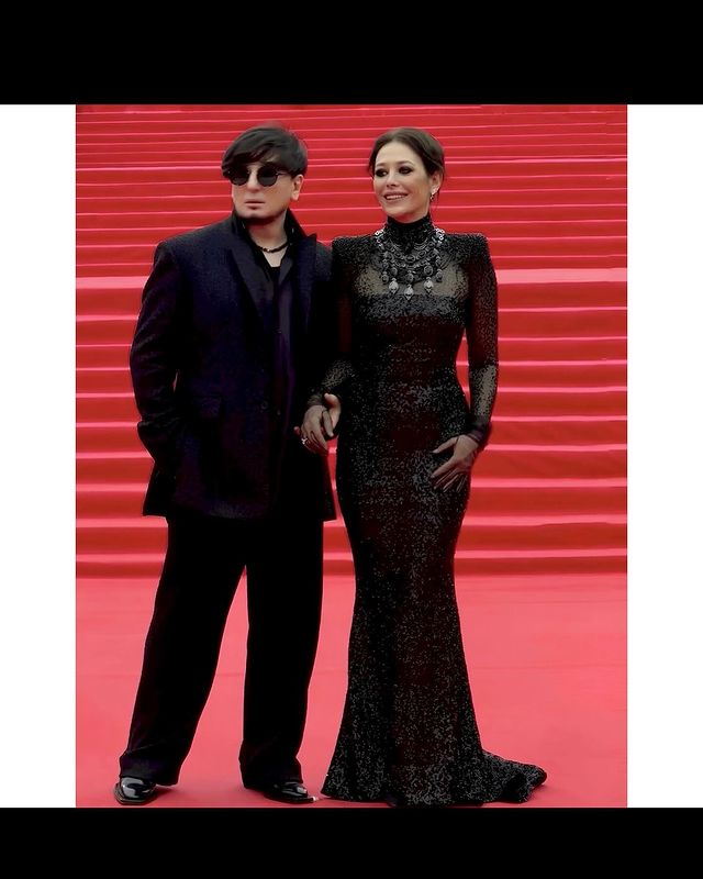 Сопровождал Екатерину дизайнер Владимир Середин, который примерил эффектный образ в тон платью актрисы.