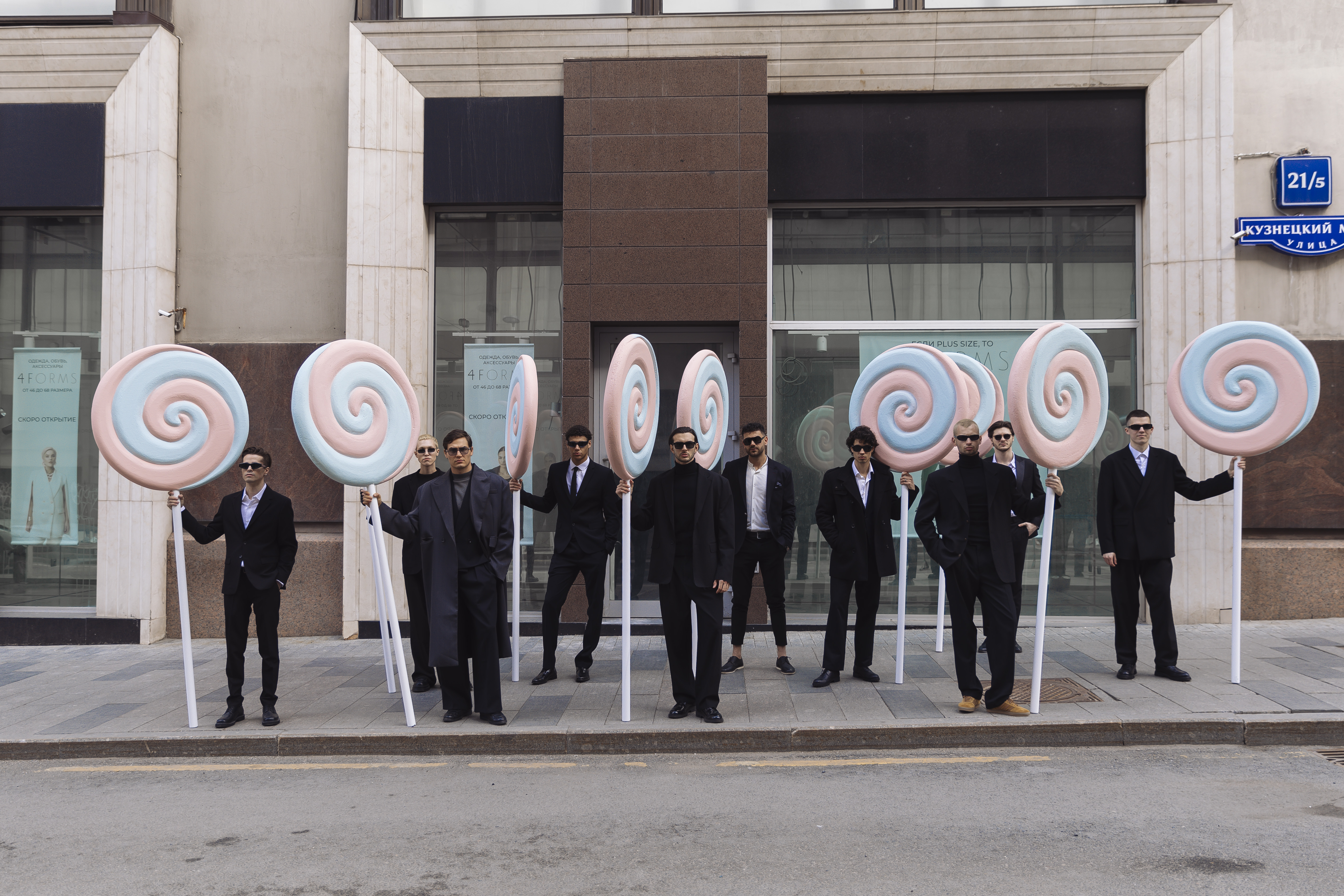 Серьезные мужчины в черных костюмах и затемненных очках прошлись по городу с огромными цветными леденцами. От комментариев незнакомцы отказались, чем заставили жителей и гостей столицы гадать, к чему была приурочена эта акция.