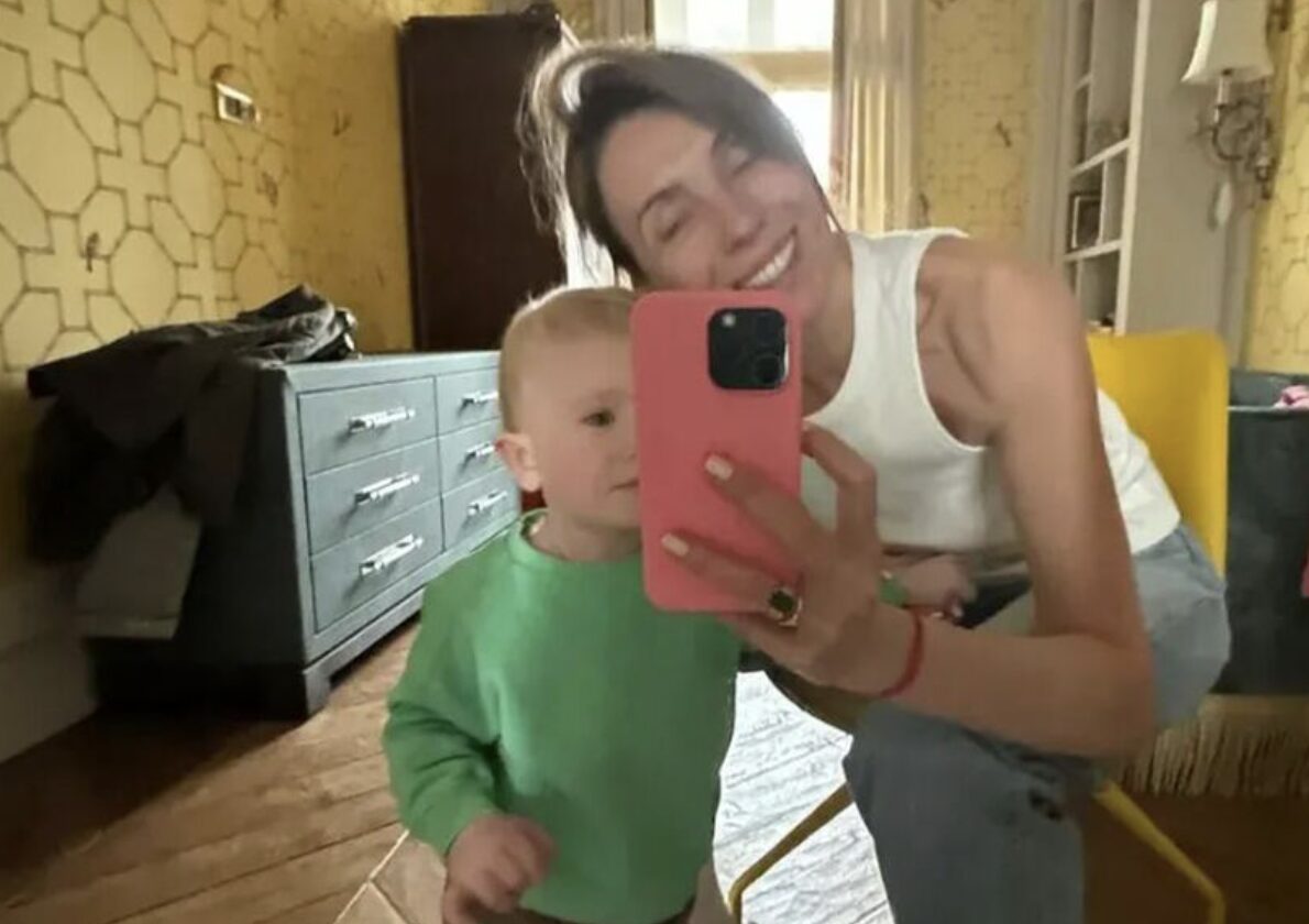На размещенном кадре в сети артистка позировала в домашней обстановке с наследников. Они сфотографировались в зеркале.
