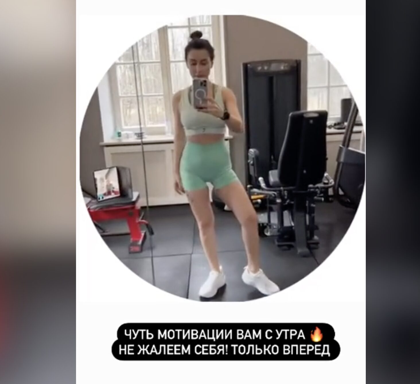48-летняя звезда запечатлела себя в зеркале в тренажерном зале. Она позировала в ярком спортивном наряде, который включал в себя топ и мини-шорты.