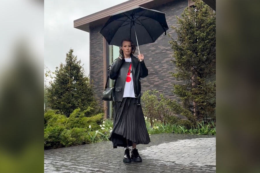На видео Ксения Собчак танцевала с зонтом под дождем. Подписчики оценили внешний вид телеведущей и сравнили ее с Мэри Поппинс.