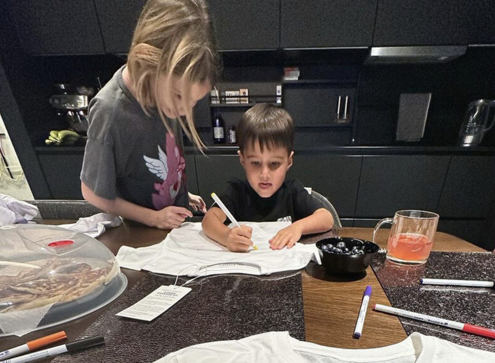На размещенных кадрах в сети модель показала, как ее дочь Алиса и Ратмир рисуют на белых футболках. Позже Шишкова сообщила, что к ним присоединилась мать рэпера Симона Юнусова.